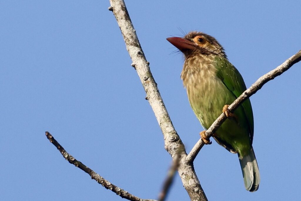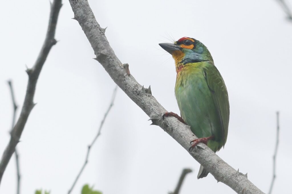 We overnighted along the way at a cheap hotel that looked like it had some nature surrounding it. I arose early and immediately headed into the forested area adjacent to the hotel. It was really nice birding. There were five new lifers in about one hour. This included both of the more common barbets, brown-headed and crimson-fronted as well as the Orange-breasted Green-Pigeon.