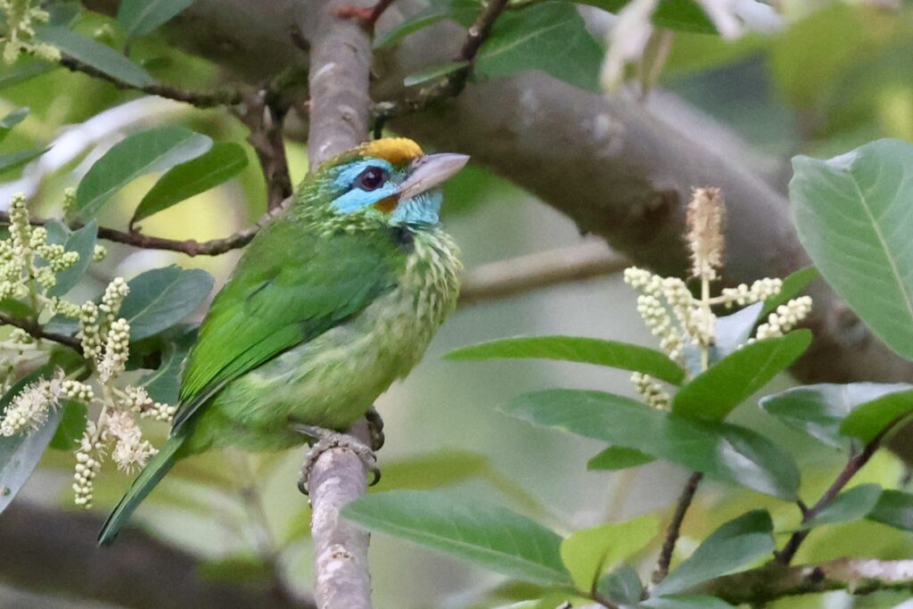 One of those “hindsight is 20/20” moments, was during check-in. We had to be transported in a golf cart from the welcoming area to our accommodation. On that 150 meter drive a lifer Blue-faced Malkoha popped up on a bush 20 meters in front of us. I could have said “Stop!” and quickly managed a photo and enjoyed the view…but…I figured it was a locally common bird and I would have plenty of opportunity. It is the only sighting of Blue-face Malkoha I have ever had.
